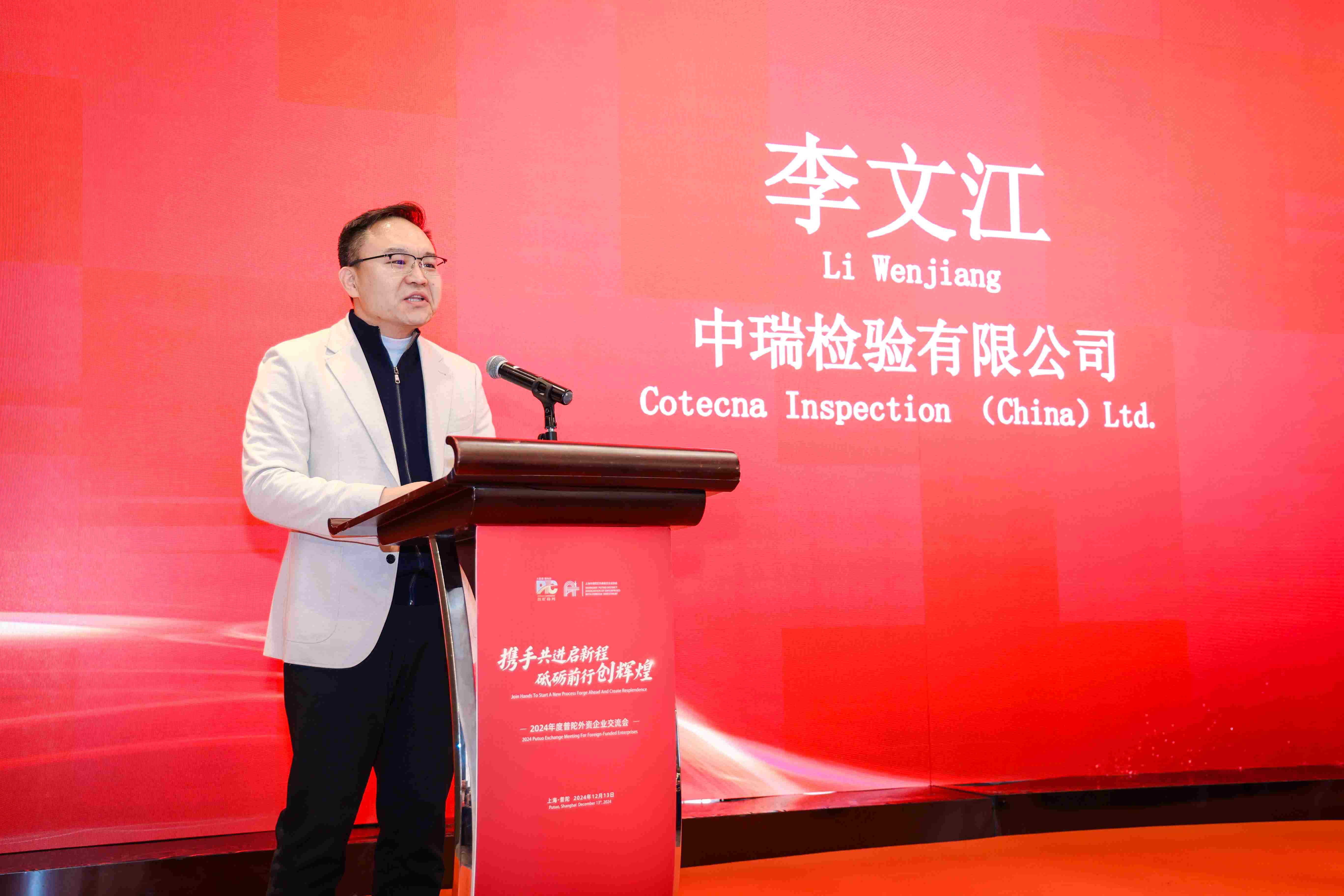 12月13日,2024年普陀区外企交流会在上海召开。活动由普陀区商务委员会主办、普陀区外商投资企业协会承办。会上,Cotecna中瑞集团获颁“投资贡献奖”、“进博风采奖”,集团副总裁、北亚区总裁李文江受邀发言并交流。